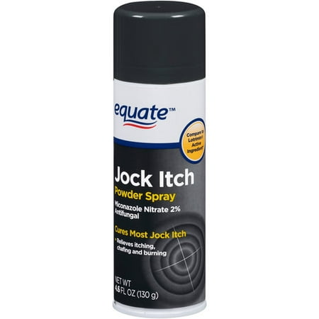 Equate Jock Itch Powder Spray is easy to apply so you experience relief fast. It alleviates itching, burning and chafing. This Equate powder spray has the anti-fungal, active ingredient miconazole nitrate. ... View Full Source